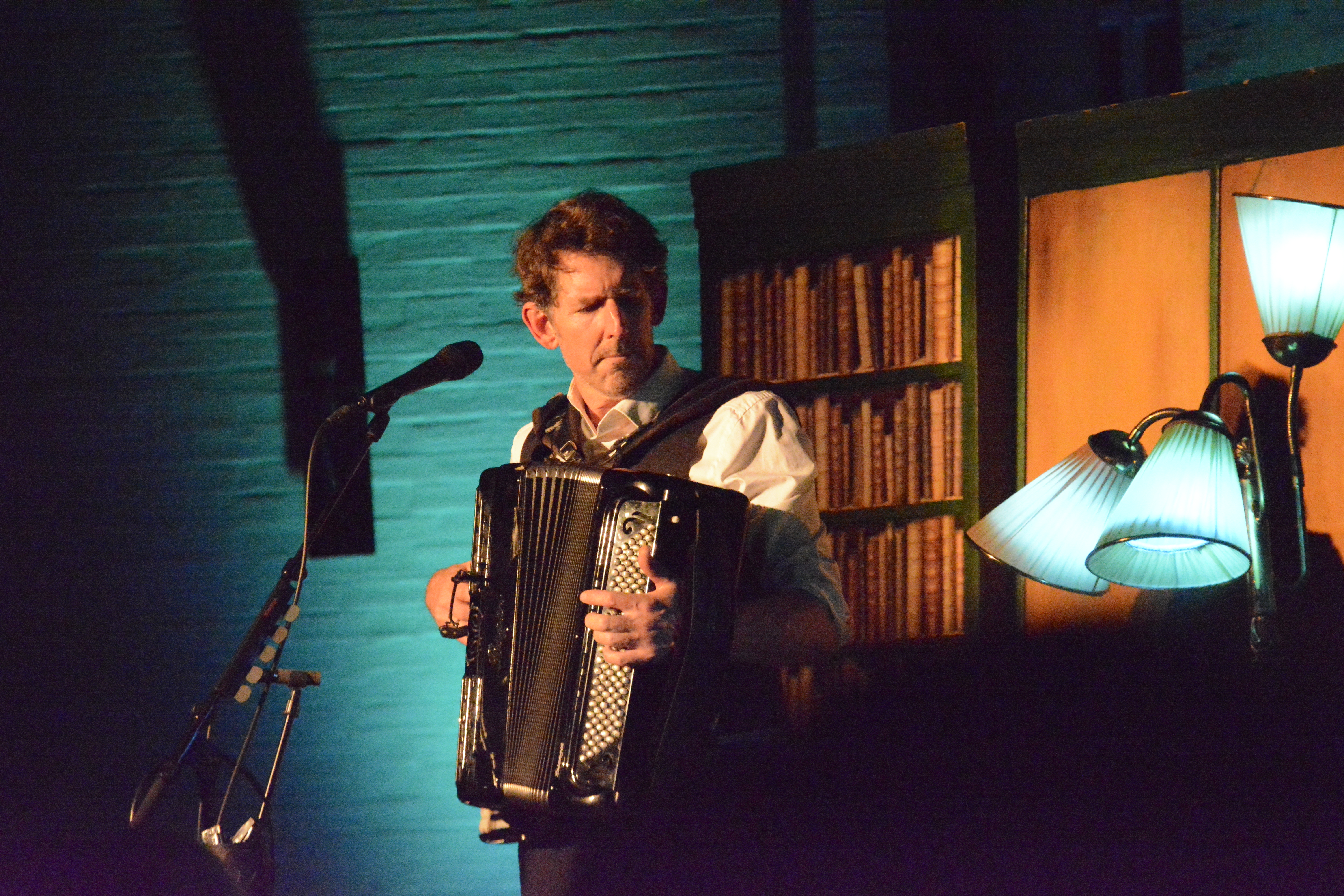 Odd Nordstoga - åleine på scena med trekkspelet, gitaren og sine musikalske forteljingar.