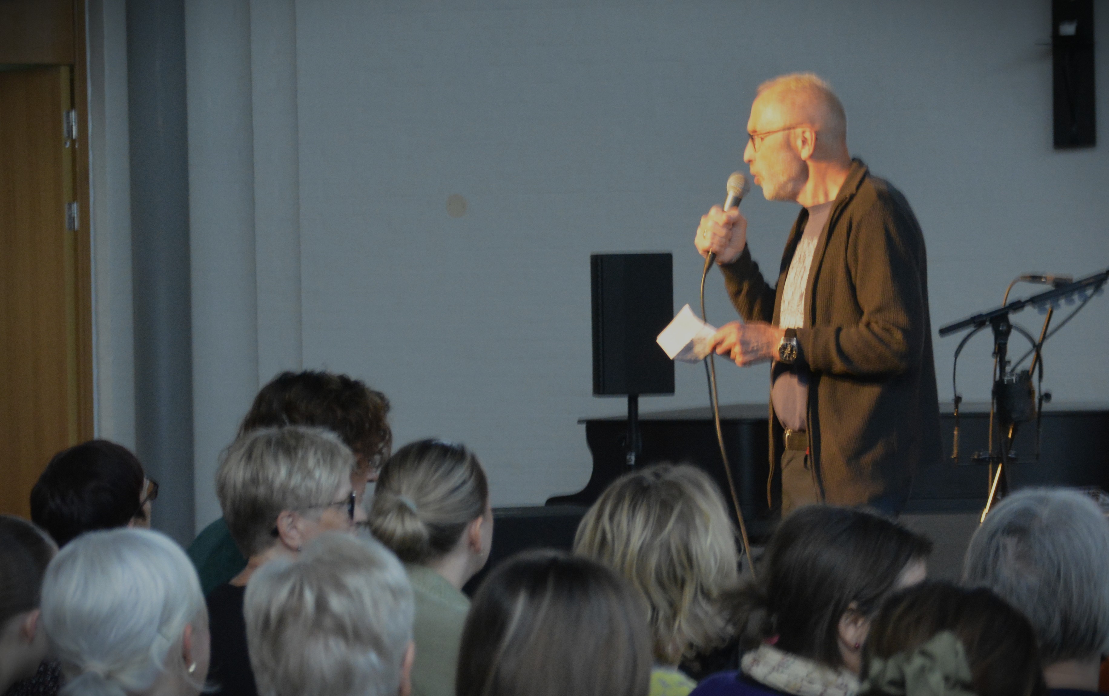 Dei som hadde funne vegen til kyrkja denne kvelden kjende nok dei fleste av songane til Odd Nordstoga. Men mellom song, trekkspel og gitar så fortalde han frå livet sitt. Både frå oppveksten med trekkspel og musikk og sterke historiar frå oppveksten i Vinje. På ein gard der sumaren og finvêr betydde hesjing av høy medan han såg på bilane som for på veg mot ferie og andre opplevingar. Men også om familien og ulike utfordringar dei hadde vore gjennom. Om mora - den sterke kvinna i familien - som fekk kreft, men ikkje let seg knekka av det. Om søstera sine utfordringar og anna som hadde vore med og forma guten frå Vinje. Og som sikkert har gjort at songane hans har vorte ekstra populære då dei rører med mange. Fframførte på Vinjedialekta og med musikk som er ei blanding av tradisjonell folkemusikk og populærmusikk. Det meste på norsk, men han mintes også då han som ung likte å imitere Bruce Springsteen og framførte også ein av hans songar.