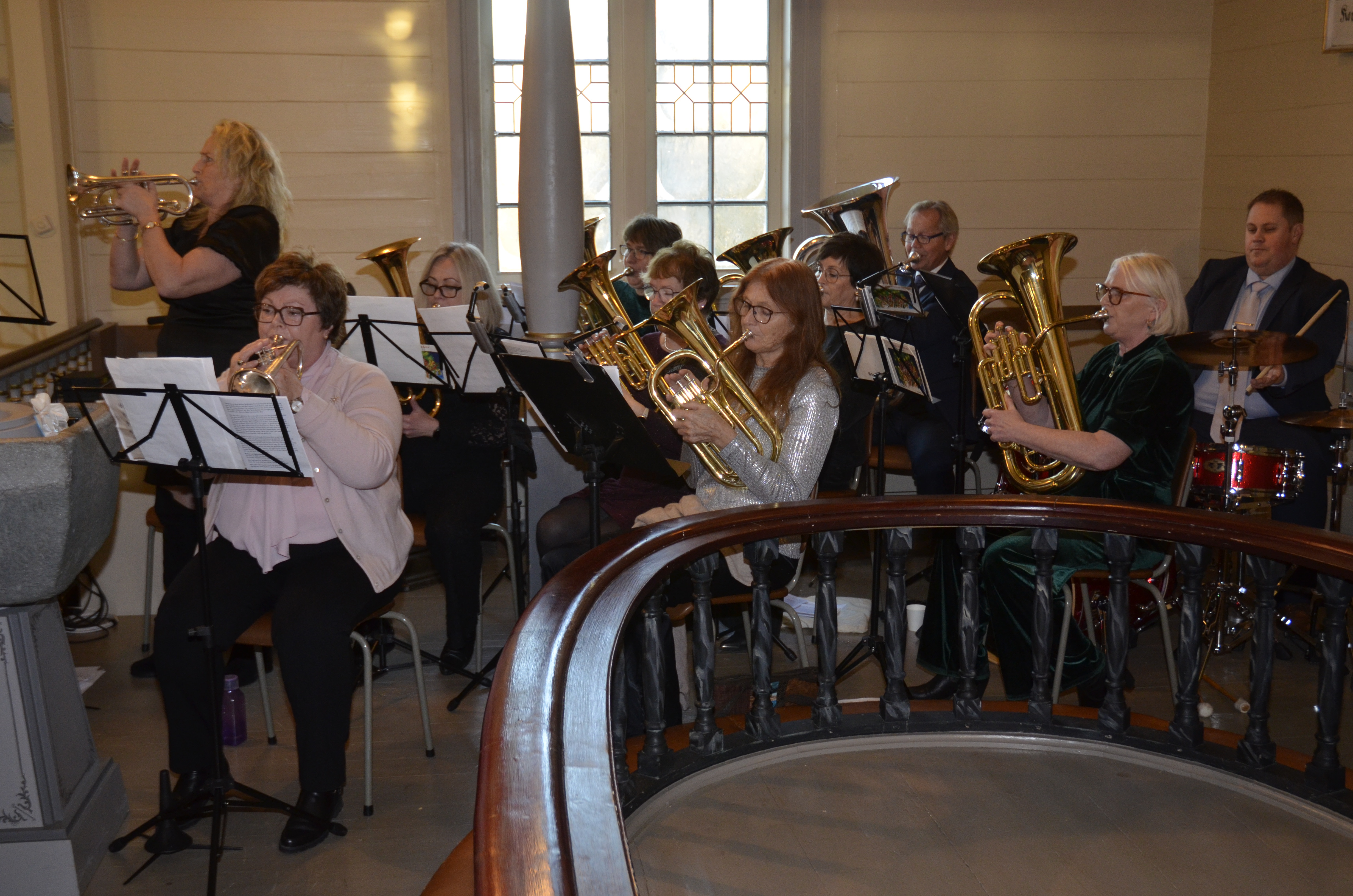 Hornmusikk i Vats kyrkje julaftan.  Foto: Kjell S. Bakke